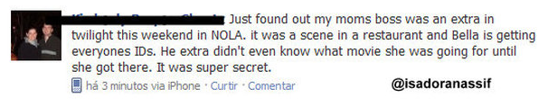 She apparently knows someone who was an extra during the Breaking Dawn scene shot down in Louisiana today: